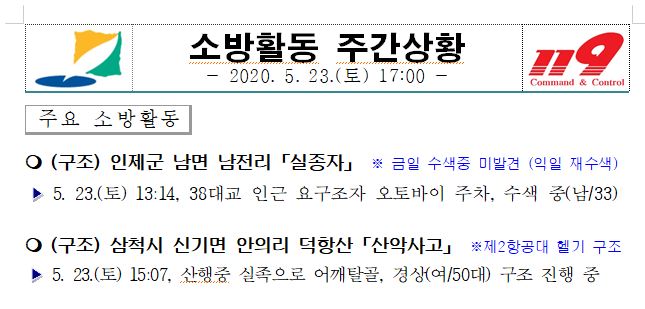소방활동 주간상황 (5. 23. 토) 17:00