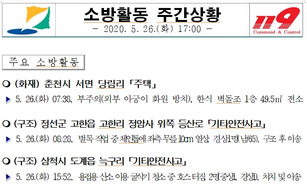 소방활동 주간상황 (5. 26. 화) 17:00