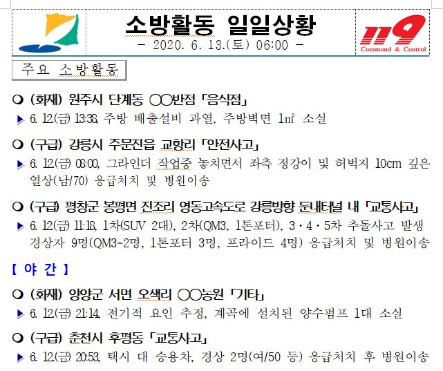 소방활동 일일상황 (6. 13. 토) 06:00