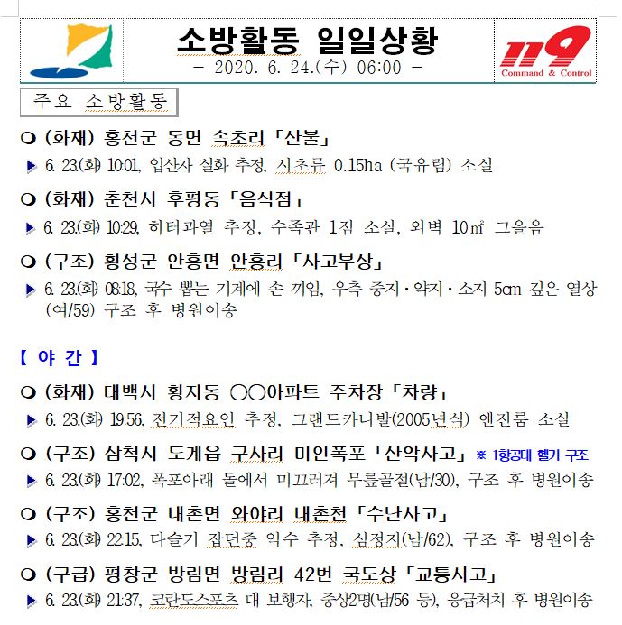 소방활동 일일상황 (6. 24. 수) 06:00