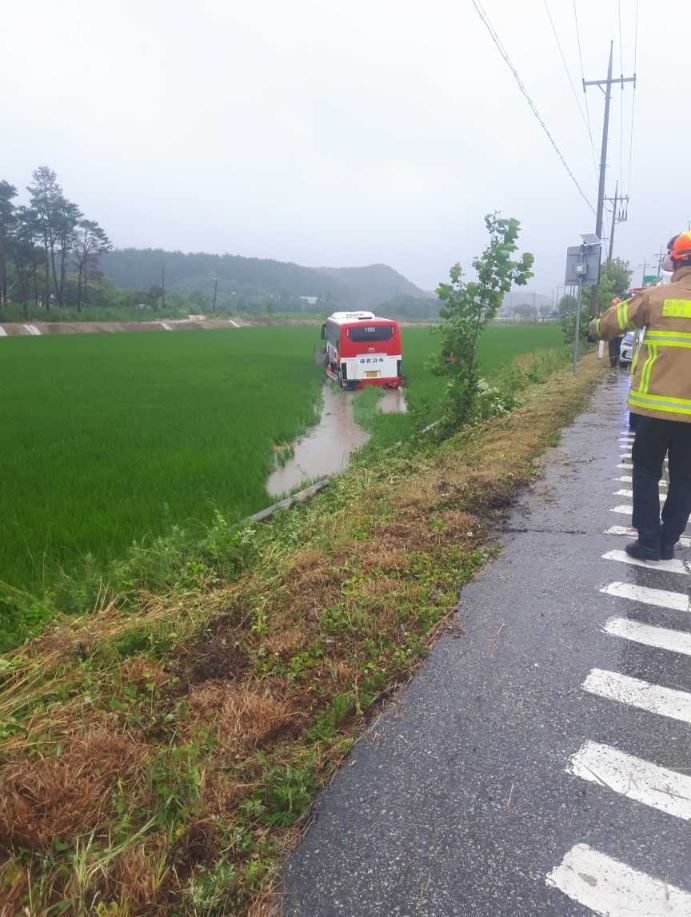 ◆내용: 8명 탑승 시외버스(서울→대진) 단독사고(커브길 가드레일 충돌 후 논으로 이탈)