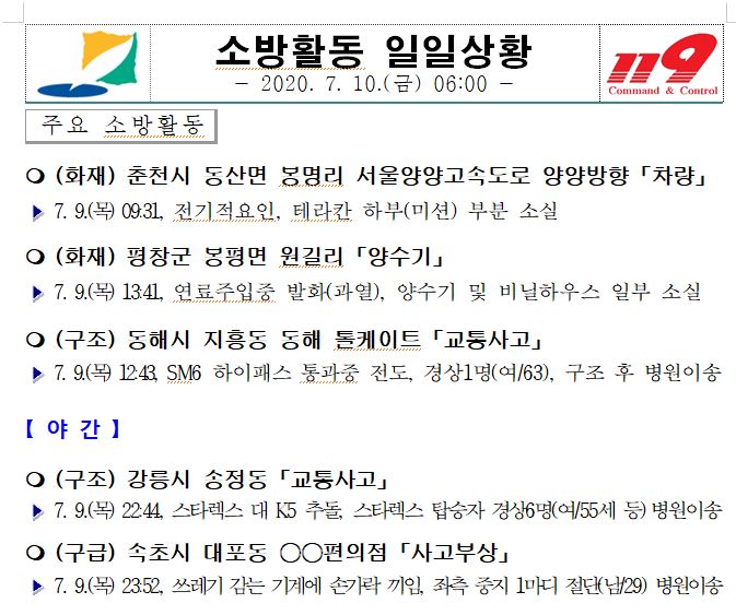 소방활동 일일상황 (7. 10. 금) 06:00