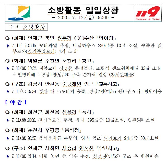 소방활동 일일상황 (7. 12. 일) 06:00