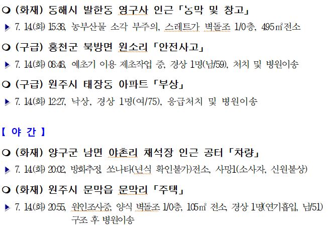 소방활동 일일상황 (7. 15. 수) 06:00