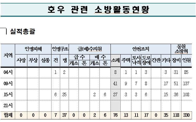 강원소방 호우 관련 소방활동실적 17시 기준입니다.(전일포함)