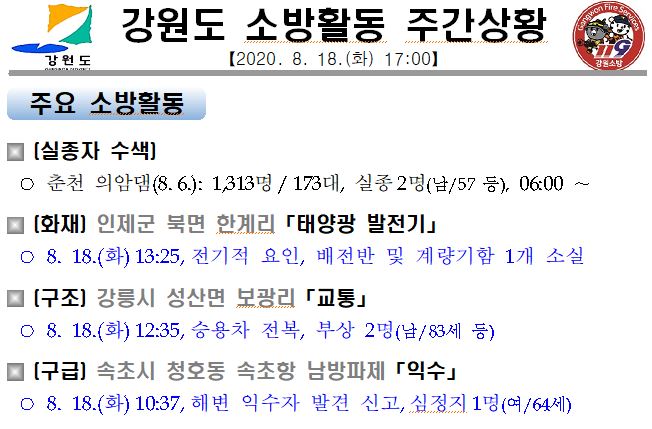 강원도 소방활동 주간상황(8. 18.화) 17:00