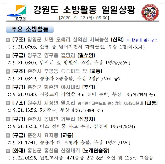 소방활동 일일상황(9. 22. 화) 06:00