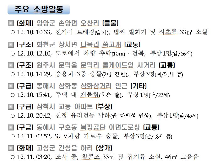 강원도 소방활동 주간상황(12. 10. 목) 17:00