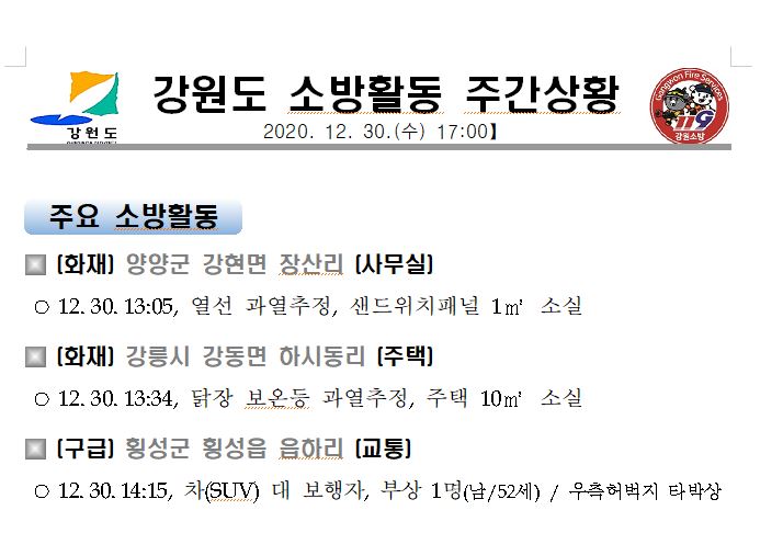 강원도 소방활동 주간상황(12.30.수) 17:00