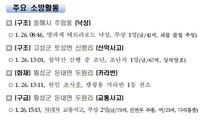 강원도 소방활동 주간상황(1. 26. 화) 17:00