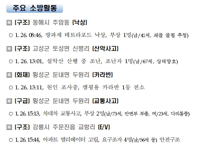 강원도 소방활동 일일상황(1. 27. 수) 06:00
