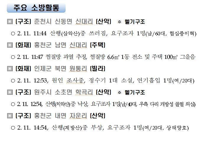 강원도 소방활동 주간상황(2. 11. 목) 17:00