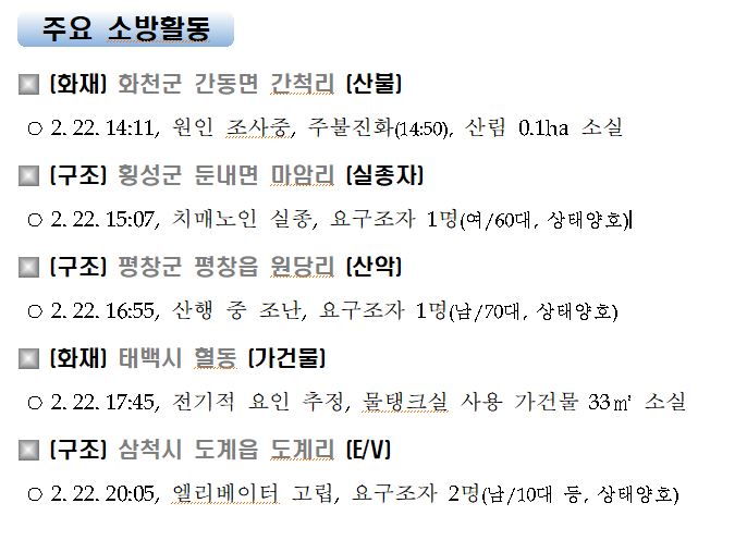 강원도 소방활동 일일상황(2. 23. 화) 06:00
