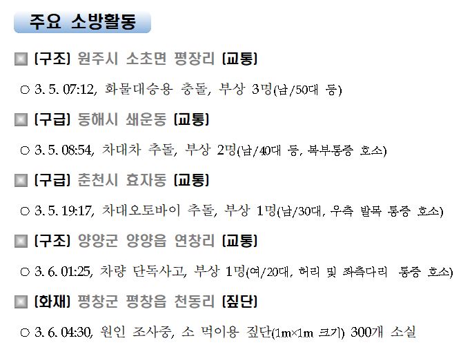 강원도 소방활동 주간상황(3. 6. 토) 17:00