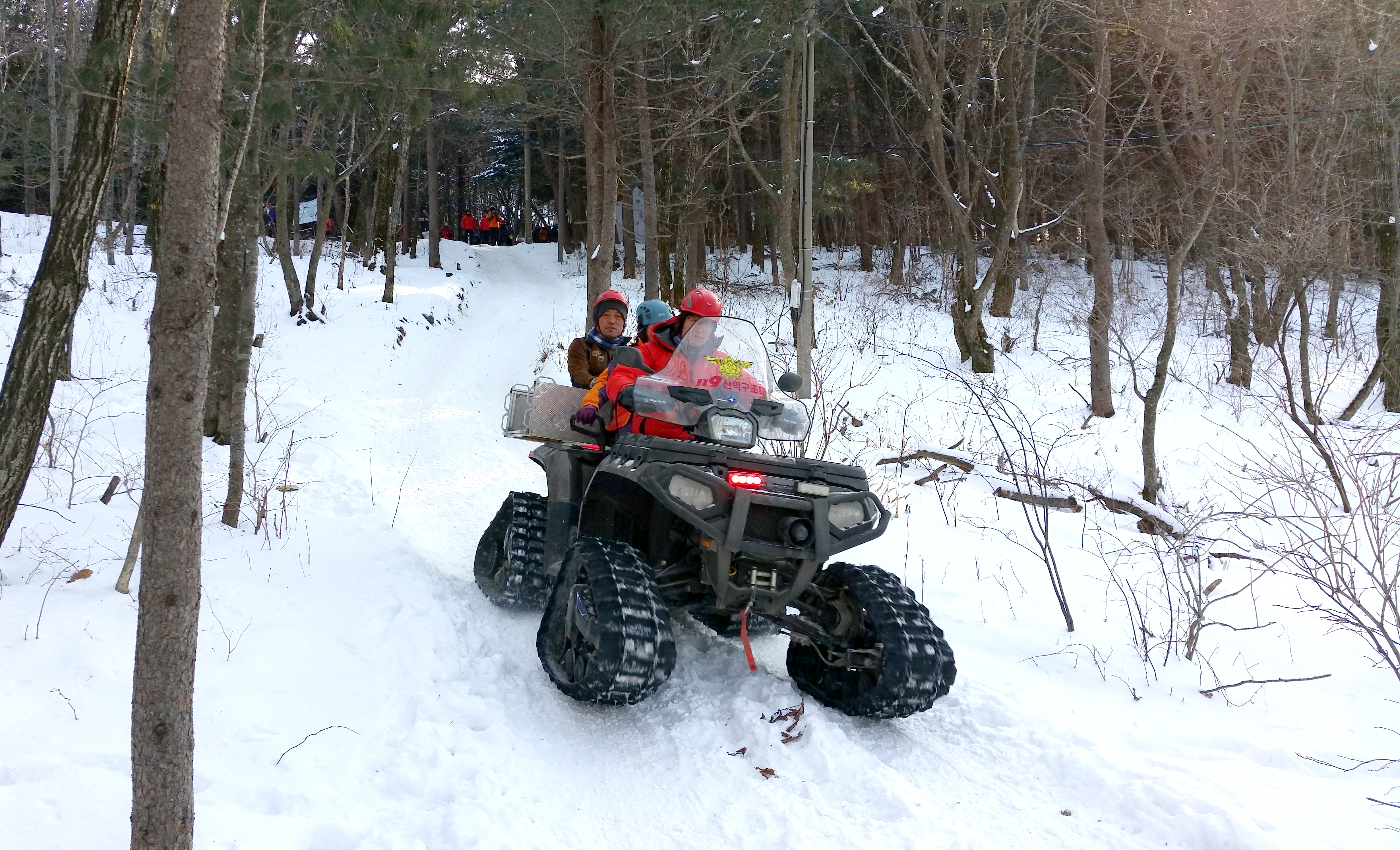 - 내용: 태백산 등반 중 무리한산행으로 인한 거동불가, 스노우궤도차량으로 구조함.