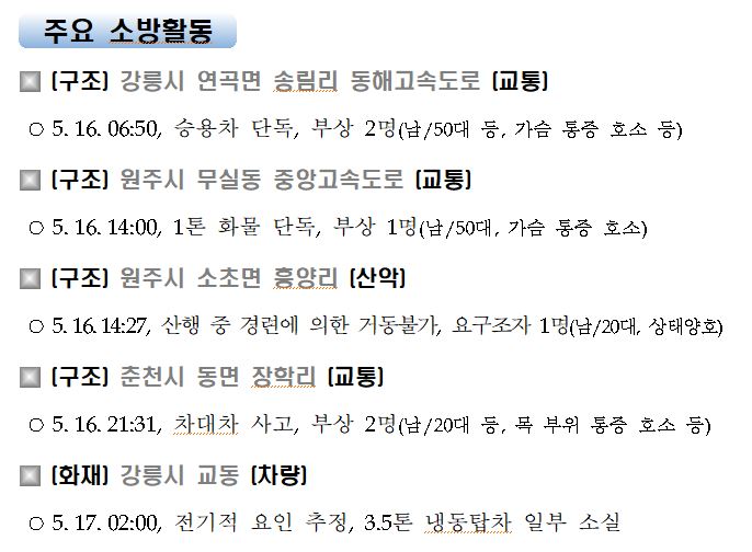 강원도 소방활동 일일상황(5. 17. 월) 06:00