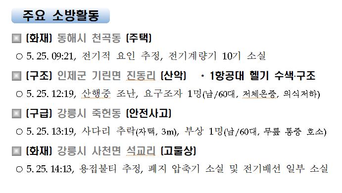 강원도 소방활동 주간상황(5. 25. 화) 17:00