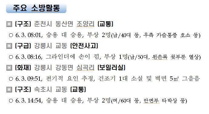 강원도 소방활동 주간상황(6. 3. 목) 17:00