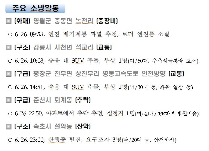 강원도 소방활동 일일상황 (6. 27. 일) 06:00