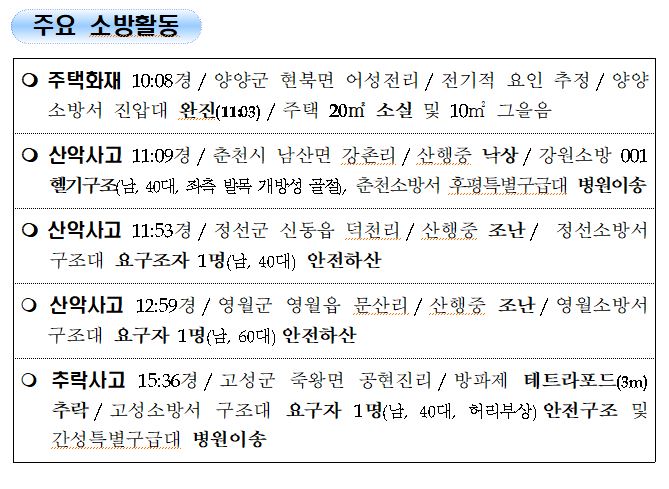 강원도 소방활동 주간상황 (7. 25. 일) 17:00