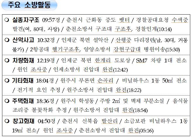 강원도 소방활동 일일상황 (7. 31. 토) 06:00