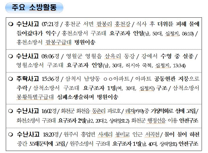 강원도 소방활동 일일상황 (8. 2. 월) 06:00