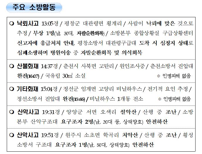강원도 소방활동 일일상황 (8. 11. 수) 06:00