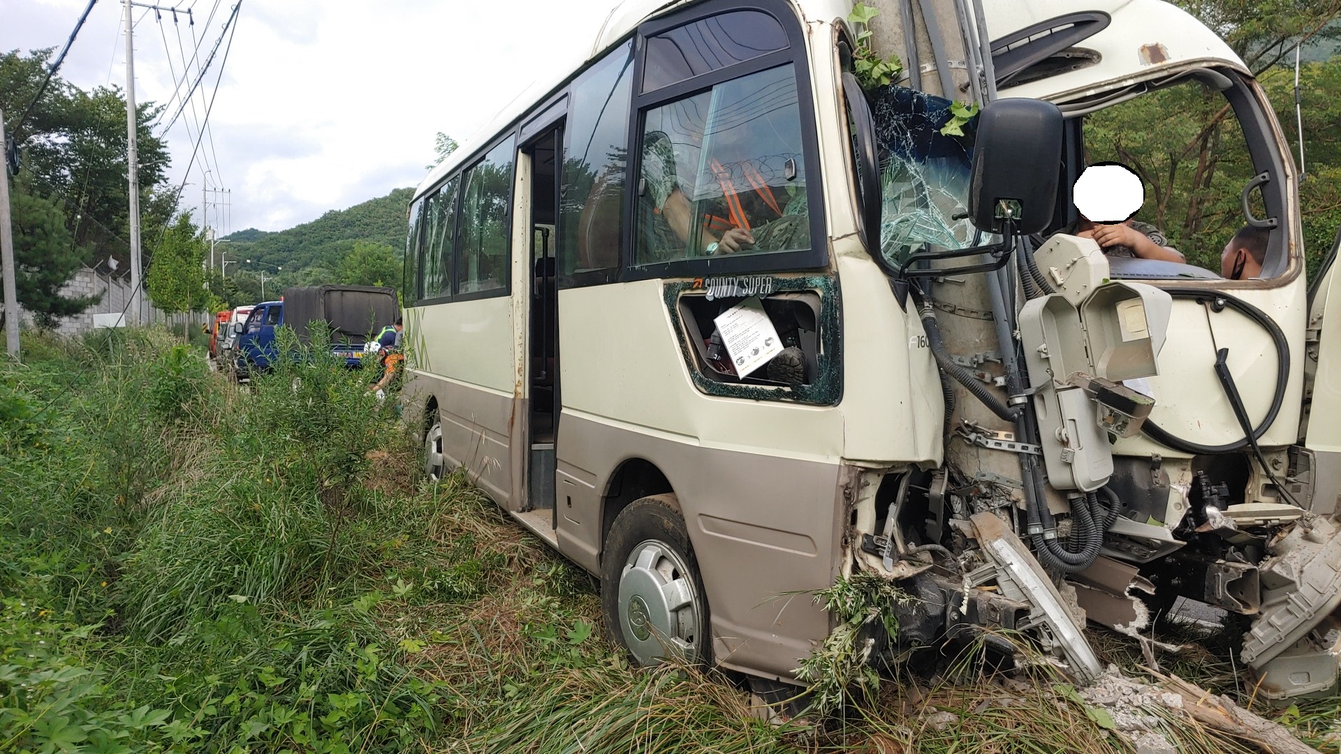 내용: 25인승 군용 콤비버스가 전봇대와 충돌