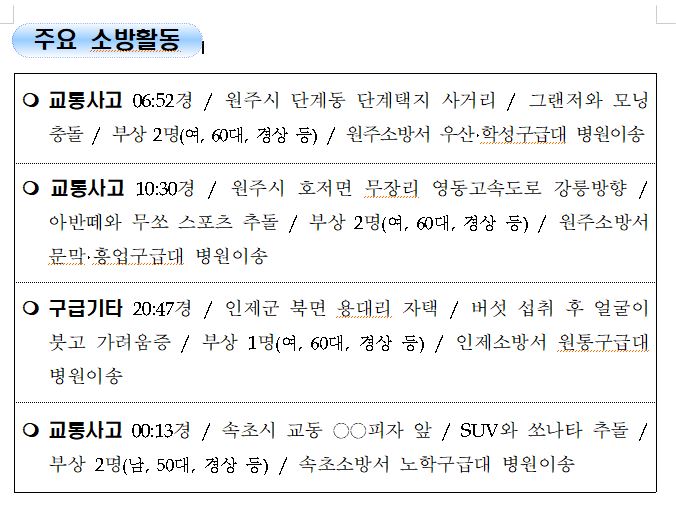 강원도 소방활동 일일상황 (9. 8. 수) 06:00