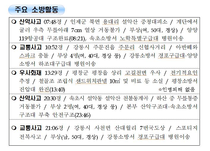 강원도 소방활동 일일상황 (9. 13. 월) 06:00