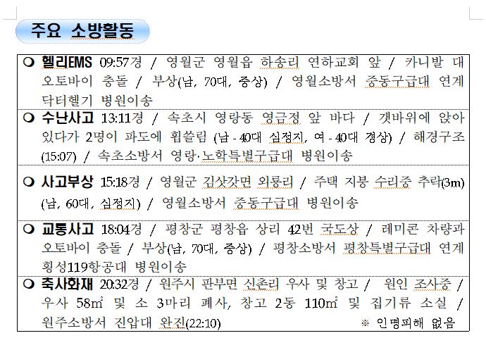 강원도 소방활동 일일상황 (9. 17. 금) 06:00