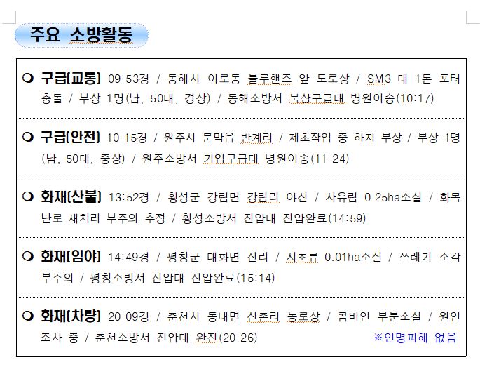 강원도 소방활동 일일상황 (11. 30. 화) 06:00