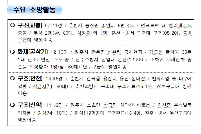 강원도 소방활동 주간상황 (12. 6. 월) 17:00