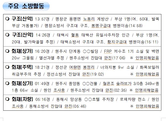 119 소방활동 상황보고 (1. 3. 월) 06:00