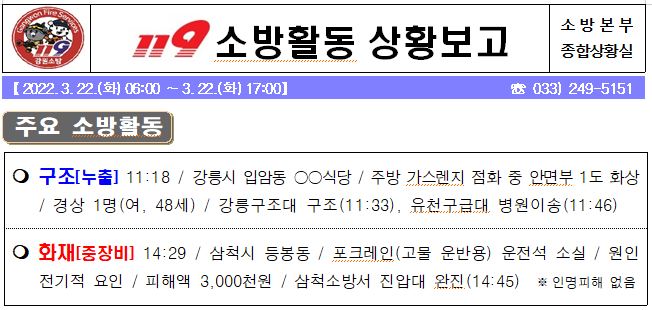 119 소방활동 상황보고(3. 22. 화) 17:00
