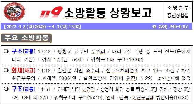 119 소방활동 상황보고(4. 3. 일) 17:00