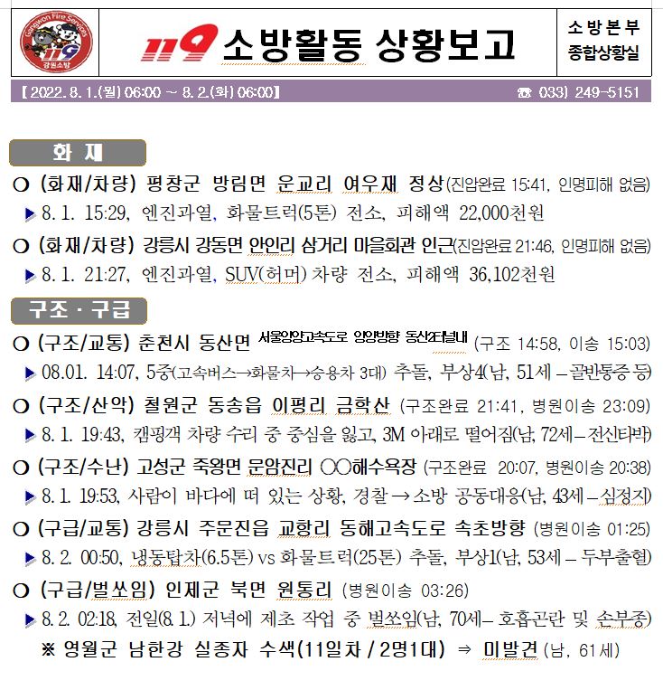 119 소방활동 상황보고(08. 02. 화) 06:00