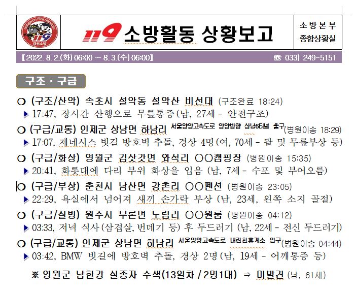 119 소방활동 상황보고(8. 3. 수) 06:00