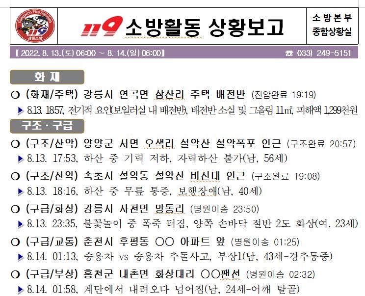 119 소방활동 상황보고(08. 14. 일) 06:00