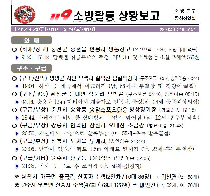 119 소방활동 상황보고(9. 24. 토) 06:00