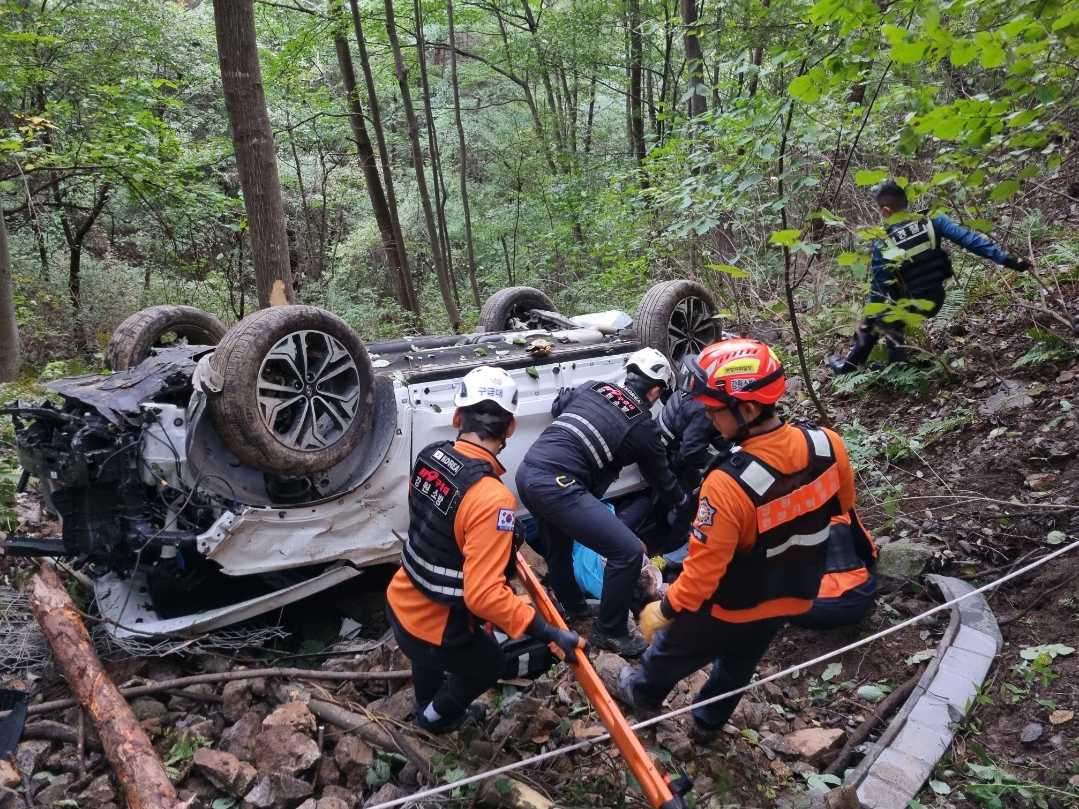 3. 내용 : 싼타페 차량이 임도(며느리고개 정상에서 도사곡 방향)에서 30m 아래로 추락 전복되어 부상자 5명 발생(중상3, 경상2)