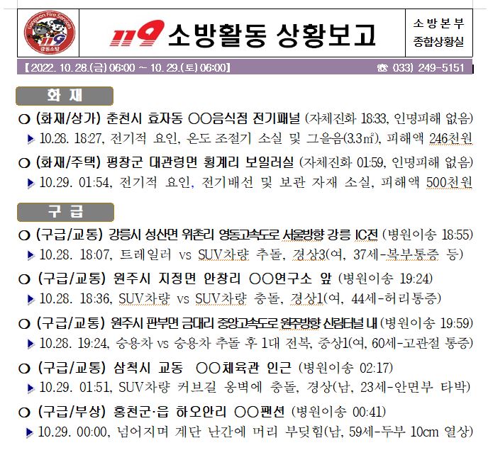 119 소방활동 상황보고(10. 29. 토) 06:00