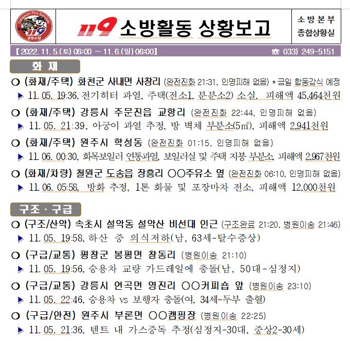 119 소방활동 상황보고(11. 6. 토) 06:00