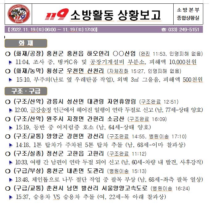 119 소방활동 상황보고(11. 19. 토) 17:00