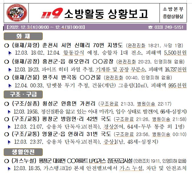 119 소방활동 상황보고(12. 04. 일) 06:00