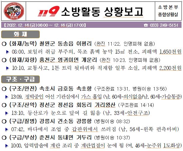 119 소방활동 상황보고(12. 16. 금) 17:00