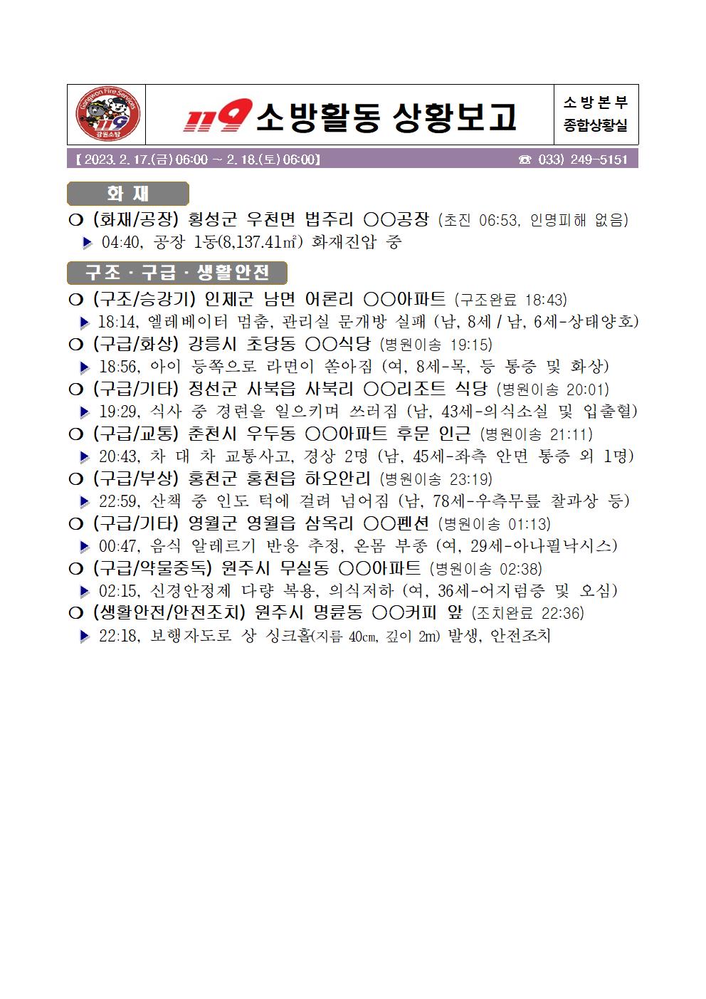 119 소방활동 상황보고(2. 17. 금) 17:00