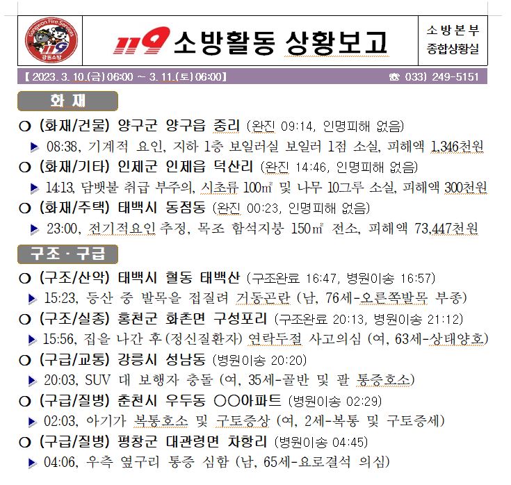 119 소방활동 상황보고(3. 11. 토) 06:00