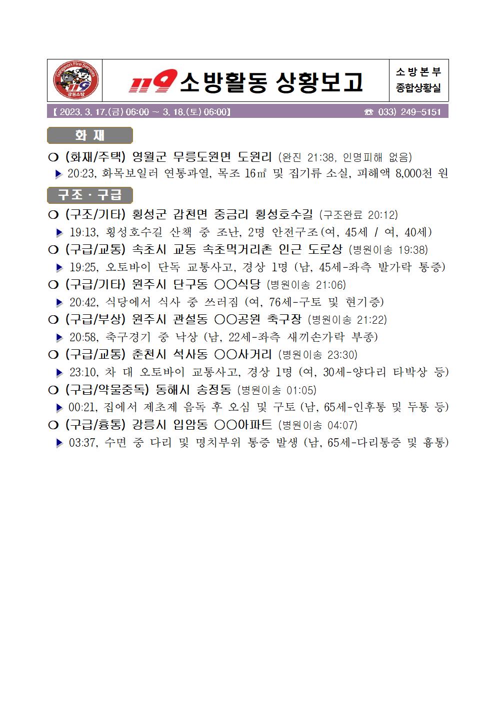 119 소방활동 상황보고(3. 17. 금) 17:00