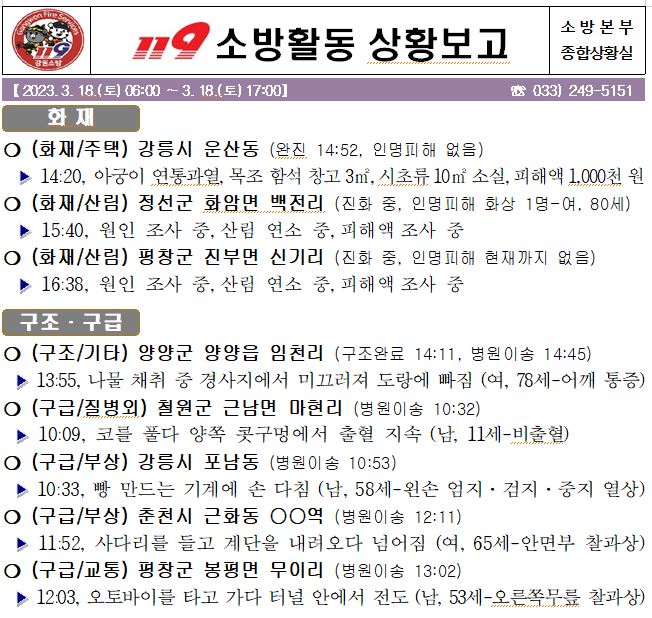 119 소방활동 상황보고(3. 18. 토) 17:00